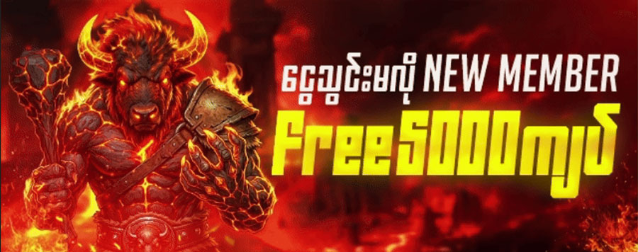 New Member များအတွက် အထူးထူးရှယ်အခွင့်အရေးအဖြစ် 5,000Ks ဘောနပ် ကို ချက်ချင်းရယူနိုင်ပါပြီ။ အကောင့်အသစ်ဖွင့်ပြီးသည်နှင့် 5,000Ks Free Bonus ကို ချက်ချင်းရရှိပြီး Slot ဂိမ်းများကို စတင်ကစားနိုင်ပါသည်။